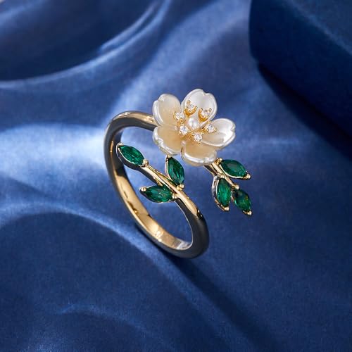 More information about 18K Gold Plated Leaf Ring for Women, Adjustable Floral Wrap Finger Ring Nature Inspired Boho Jewelry, Open Band Wedding Gift, Comfort Fit No Tarnish