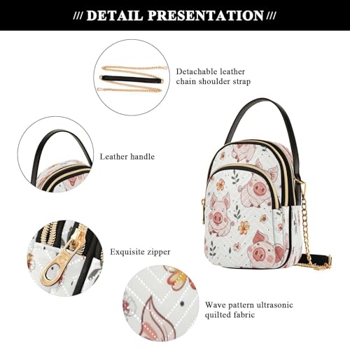 More information about Quilted Crossbody Bags for Women,Cute Pink Pig Yellow Flowers Women's Crossbody Handbags Small Travel Purses Phone Bag