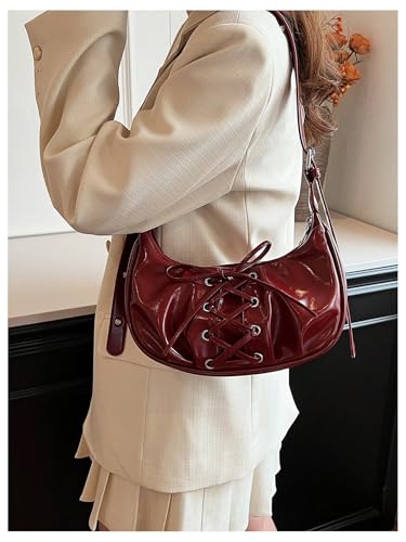 • Hobo Bag, Y2K Purse, Fashion Motorcycle Bag, Underarm Shoulder Bag, Lace Up, Zipper Closure, Top Handle, Adjustable Strap