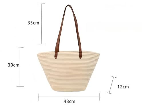 Tote Bag for Seaside Vacation,Lightweight Large Capacity Woven Bag for Women,Leather Handles, Summer Beach (Shoulder,Handbag)  6