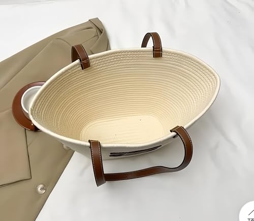 Tote Bag for Seaside Vacation,Lightweight Large Capacity Woven Bag for Women,Leather Handles, Summer Beach (Shoulder,Handbag)  4