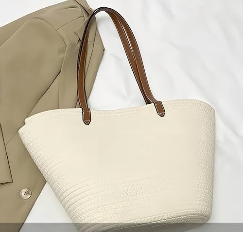 HOT ! Tote Bag for Seaside Vacation,Lightweight Large Capacity Woven Bag for Women,Leather Handles, Summer Beach (Shoulder,Handbag)