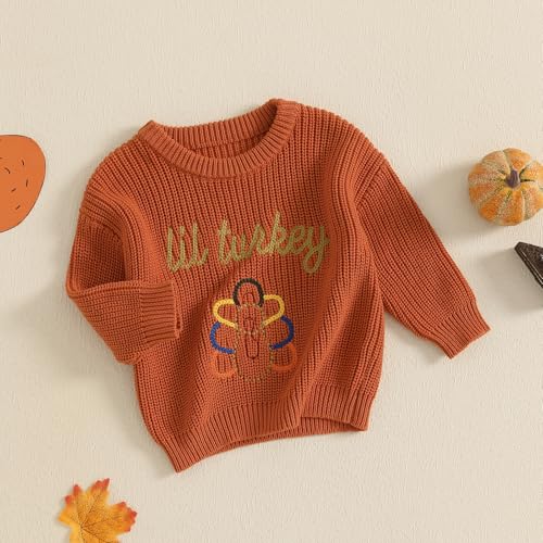 Thanksgiving Baby Girl Boy Outfit Newborn Toddler Little Turkey Oversized Knit Sweater Chunky Pullover Sweaters 1