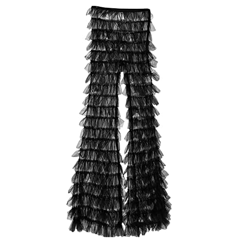 • ♥All-match: Wide leg trousers women, sheer mesh evening party layered pants,perfect choice for friends party! Just simply add high heels and clutch! Solid Color Chiffon Multi Layer Ruffle Yarn High Waist Wide Long Pants Casual Clubwear,style yours according to your event!