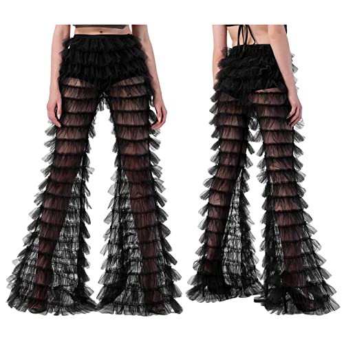 • ♥Design: Bell-bottom pants for women,sexy pants for women, black, sheer, wide leg, elastic band, high waist, tiered design, women tiered layered mesh tulle pants,beach cover up pants,women wide leg pants,wide leg pants for women,pants for women high waist,high waist pants women,long trousers for women tall,trousers for women,wide leg trousers women,women streetwear,streetwear pants,very fashionable.