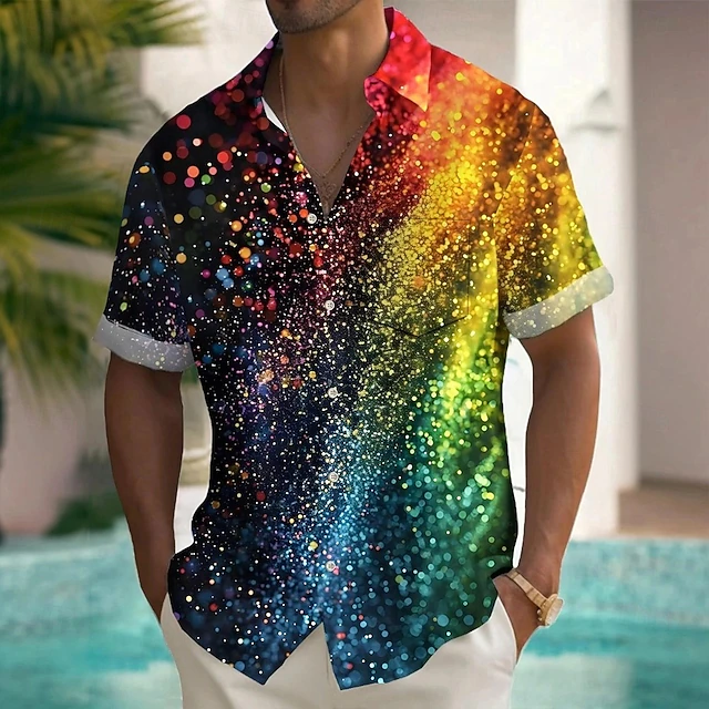 More information about Men's Rainbow Splash Ink Pride Shirt Summer Shirt Button Up Shirt Short Sleeve Fashion Casual Holiday Summer Spring Turndown 3D Print Collared Shirts Front One Pocket Black
