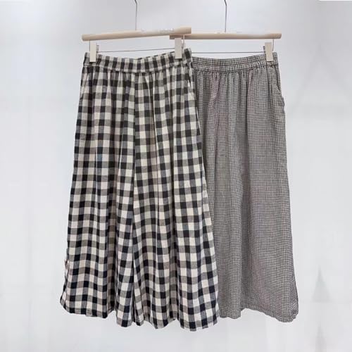 Japanese plaid skirt pantswomen's artistic retro plaid cotton linen skirt pantsloose oversized casual pants 2