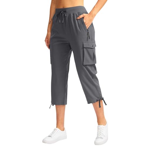 HOT ! Cargo Capris for Women Casual Drawstring Capris Pants with Pockets Summer Lightweight Quick Dry Hiking Pants