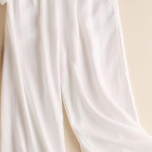 Women's Wide Leg Pants Linen Straight Tube Loose Summer Elastic Waist Wrinkle Shallow Ankle Casual 7
