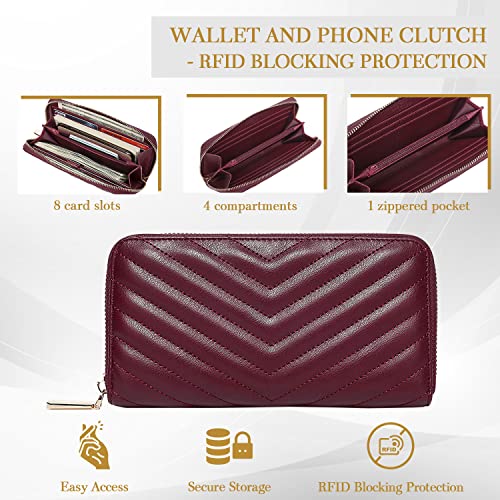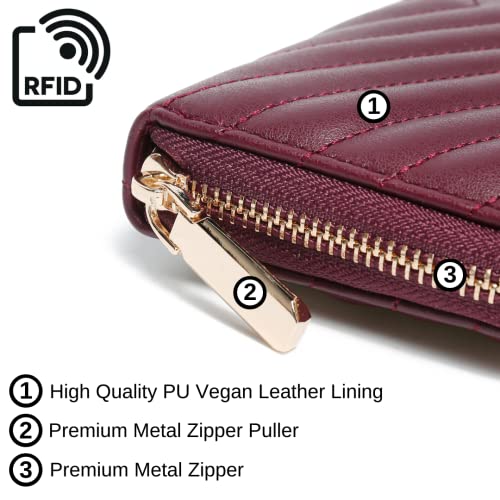 More information about Daisy Rose Women’s Zip-Around Wallet & Phone Clutch with RFID Blocking, PU Vegan Leather (Burgundy)