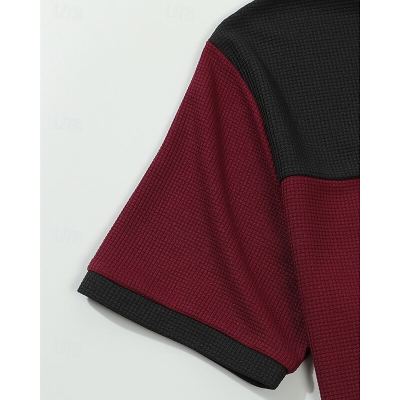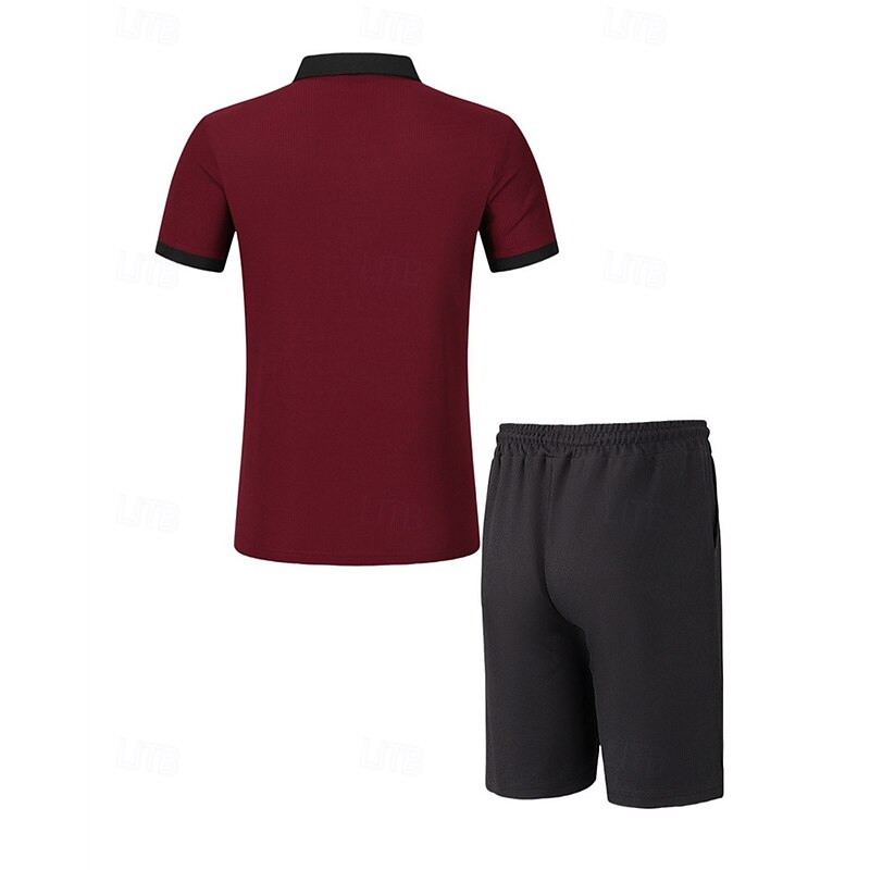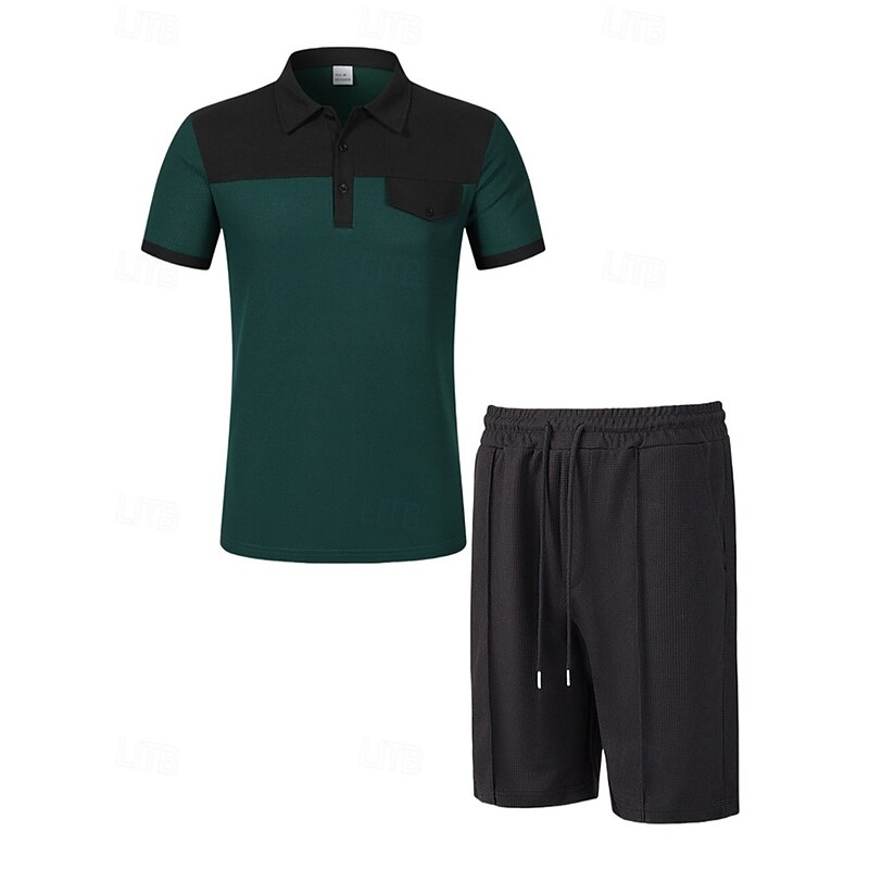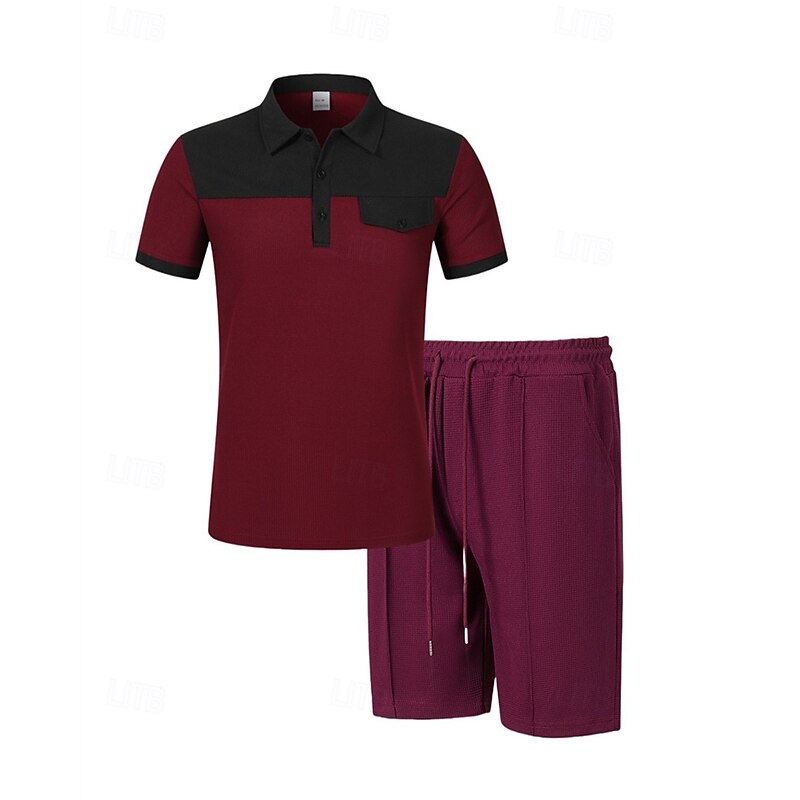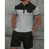 More information about Men's T-shirt Suits 2 Pieces Outfits Tee & Shorts Short Sleeve Lapel Summer Color Block Fashion Casual Patchwork Pocket 2 Piece Vacation Daily Wear Going out Wine Dark Green khaki Top Tee for Men