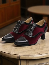 More information about Women's 1920s Edwardian Lace-Up Kitten Heel Oxford Shoes – Vintage Two-Tone Velvet and Faux Leather Brogue Pumps for Gatsby Party and Formal Wear