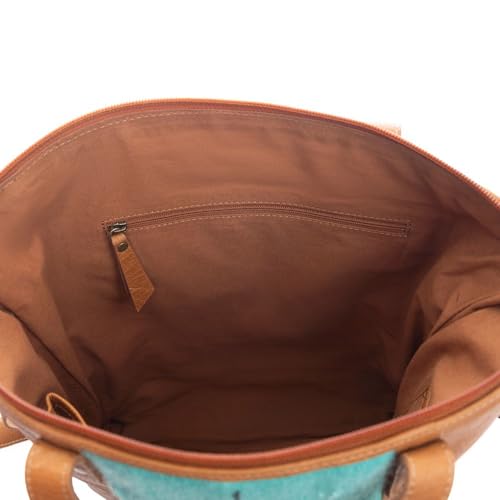 Myra Bag Shoulder Bag for Women - Western Upcycled Leather and Canvas Handbag Caramel & Teal 5
