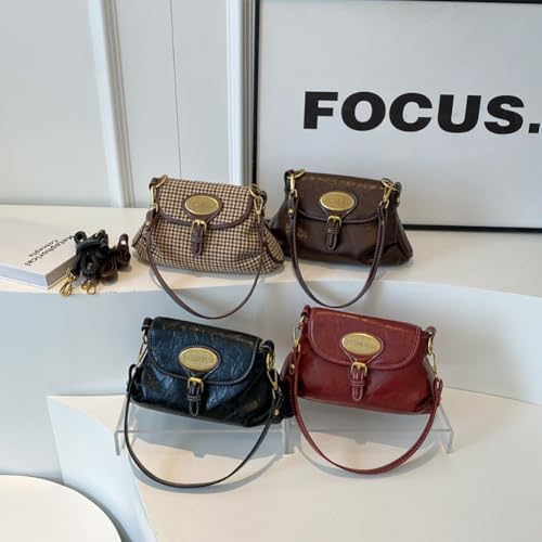 • Diverse Options: With a wrinkled, vintage finish (black/brown/red) or a classic checkered pattern, paired with antique gold hardware. Choose from 4 stylish variants to match your outfit, from casual denim to elegant coats.