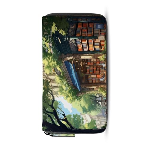 HOT ! Bookshop on The Street Women's Large Capacity Wallets Holder Wallet Credit Card Clutch Coin Pocket Pu Leather Zipper Closure Deal Gift for Women 21219826