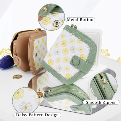WishLotus Small Card Holder Wallet for Women, Daisy Flowers Cute Wallet with Zipper Pocket, Bifold Card Holder Coin Purse for Daily Use (Khaki) 5