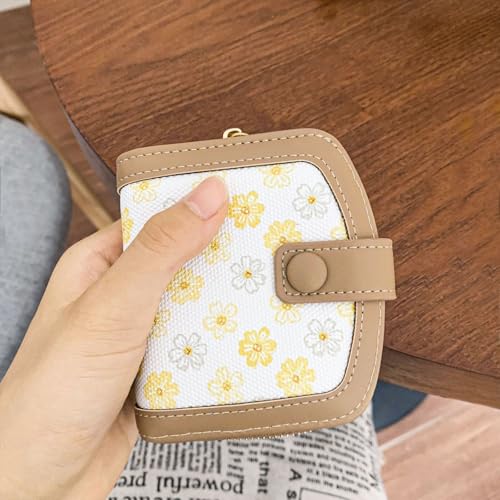HOT ! WishLotus Small Card Holder Wallet for Women, Daisy Flowers Cute Wallet with Zipper Pocket, Bifold Card Holder Coin Purse for Daily Use (Khaki)