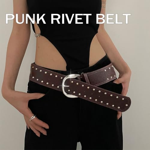 More information about Women Punk Studded Leather Belt Rock Rivet Wide Belt for Dress Pants Cowgirl Thick Belts Metal Buckle Chunky Belts
