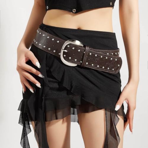 HOT ! Women Punk Studded Leather Belt Rock Rivet Wide Belt for Dress Pants Cowgirl Thick Belts Metal Buckle Chunky Belts