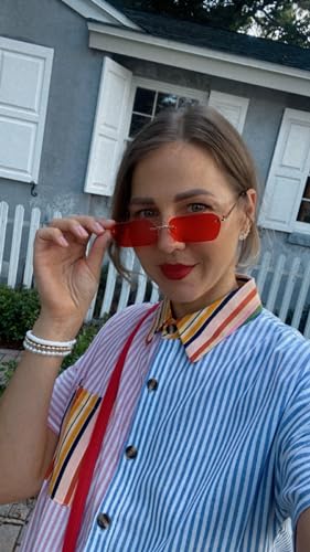 • Suitable occasion-Small vintage rimless sunglasses are ideal choice for men and women, suitable for daily wearing, such as walking, shopping, travel, taking photos. It is also ideal gift to share with your families, friends, colleagues.