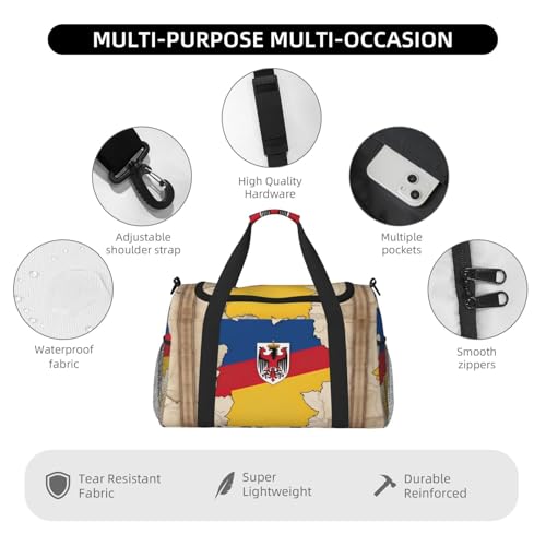 Thuringia flag Map with an eagle pattern print Travel Duffle Bag Gym Bag for Women,Puffer Tote Bag,Weekender Overnight Bag Organizer 7