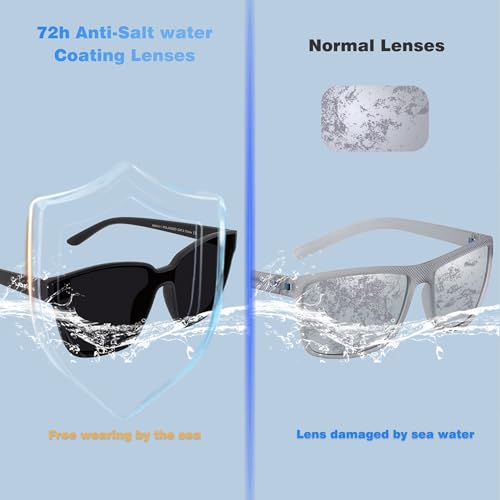 • LIGHTWEIGHT MATERIALS – High Grade TR90 frame material with solid metal hinges, our polarized sunglasses are designed to be lightweight yet durable enough to withstand everyday wear and tear. Polarized UV400 lenses are suitable for any gender and any weather conditions.