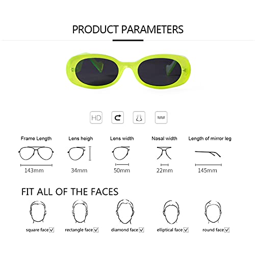 • Designer Inspired Oval Sunglasses : Neon Rounded Thick Rimmed Oval Shape Sunglasses, Chic Retro-inspired Round Lenses with Cute Colorful Neon Color Frames