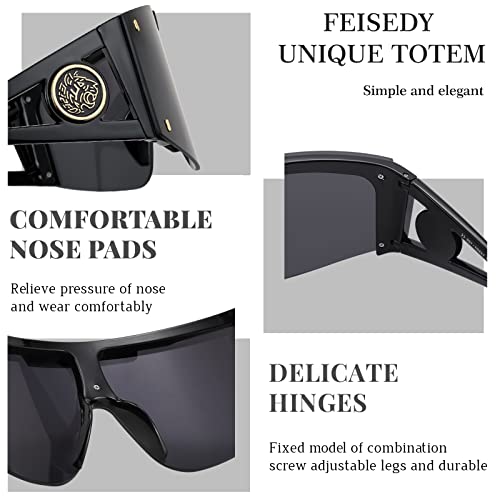 • [Unique Design] The updated large designed sunglasses from FEISEDY fits better and exudes charm. The surround one-piece large lens design produces a cool, elegant, and classy look.