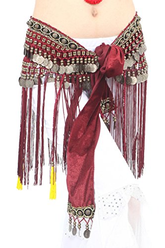 Women's Belly Dance Tribal Hip Scarf with Fringe Coins Flannel 5