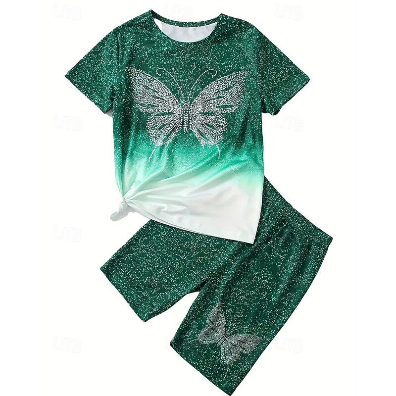 Girls' 3D T-shirt & Shorts Set Short Sleeve Summer Spring Sports Fashion Daily Kids 4-12 Years Crew Neck Outdoor Vacation Sports Tailored Fit 11