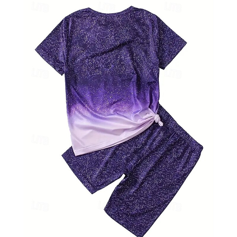 Girls' 3D T-shirt & Shorts Set Short Sleeve Summer Spring Sports Fashion Daily Kids 4-12 Years Crew Neck Outdoor Vacation Sports Tailored Fit 1