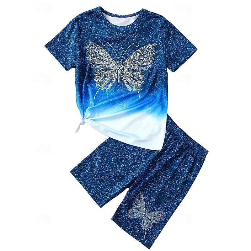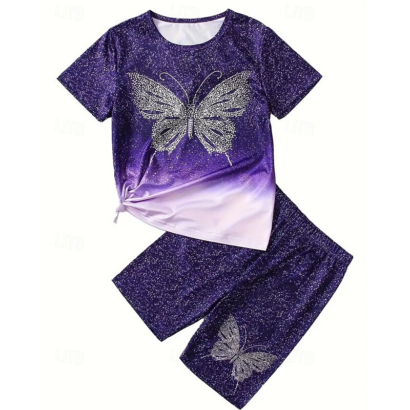 More information about Girls' 3D T-shirt & Shorts Set Short Sleeve Summer Spring Sports Fashion Daily Kids 4-12 Years Crew Neck Outdoor Vacation Sports Tailored Fit