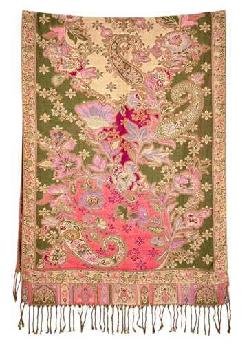 Achillea 2 Pack Burgundy Reversible Pashmina and Olive Rose Floral Shawl Bundle 6