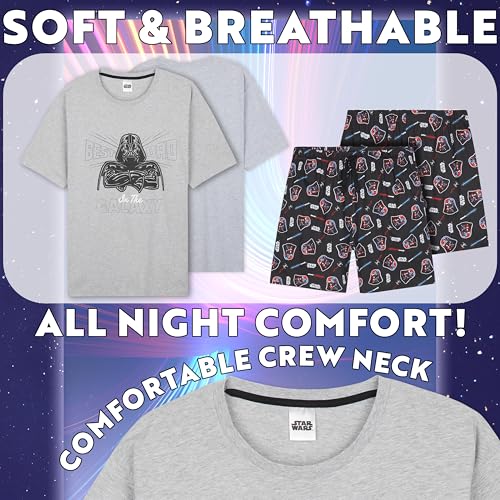 Fabric type: Top: 93% Cotton, 7% Polyester, Bottoms: 100% CottonCare instructions: Machine WashOrigin: ImportedThe perfect sleepwear for Star Wars-loving dads! This men's PJ set includes a comfy Star Wars shirt and shorts—great for lounging, movie nights, or a restful night’s sleepThese sophisticated men’s pajamas come in a range of sizes with an elastic waistband for the perfect fit. Check the dropdown menu and images for the size chartMade from soft, breathable fabric, these men's lounge sets are gentle on the skin. Designed for comfort with a crew neck Star Wars Tshirt and relaxed-fit shortsWith lightweight, breathable material and a comfortable design, these short PJs are perfect for relaxing on weekends, unwinding after work, or cozying up for movie nightsSearching for Star Wars gift for men? This men's pajama set is official Star Wars merch - these sets make great mens gifts for birthdays, or Christmas Perfect for everyday use. top-grade materials and excellent craftsmanship ensure long-lasting durability.