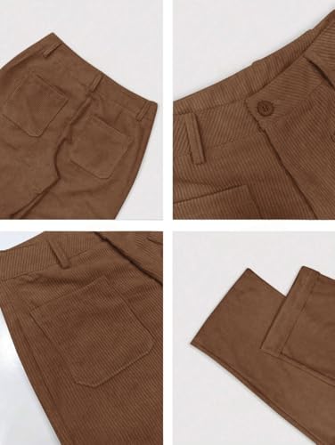 ZAFUL Women's Casual Pants Corduroy Straight Leg Lounge Pants Plain Loose Trousers Fashion Long Pants 6