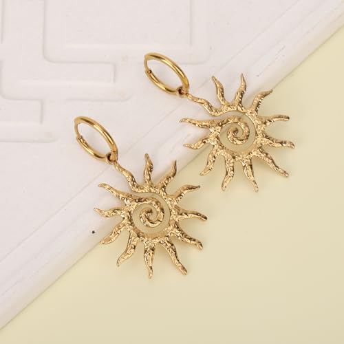 • Package Content: You will receive a pair of gold sun pendant earrings, measuring approximately 5.4x3.4cm/2.1x1.3in, exquisite and fashionable, a fashionable accessory for daily wear. Be cautious of the risk of suffocation of small parts.