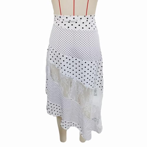 • Design: Summer beach vacation skirt for women, high waist, sheer lace pathwork, floral/polka dot print, irregular hem, midi length, elasitc waist, fairy grunge midi skirt for women, teen girls