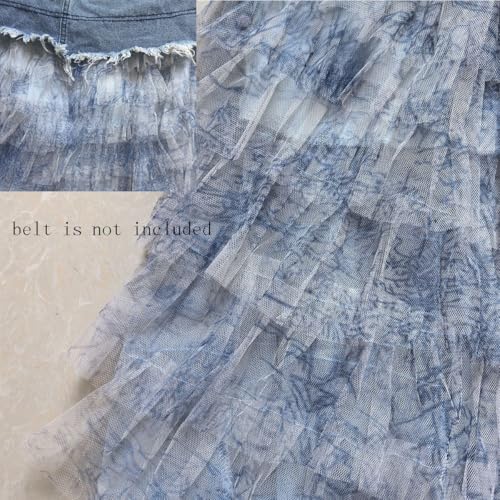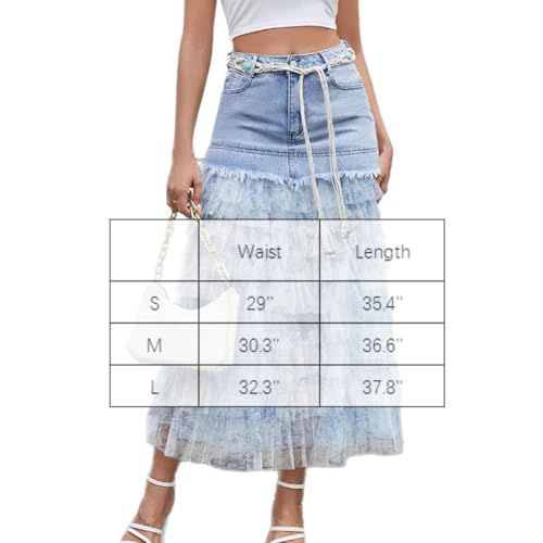More information about Ypser Boho Long Denim Skirt Tiered Ruffle Mesh Tulle Patchwork Midi Jean Skirts