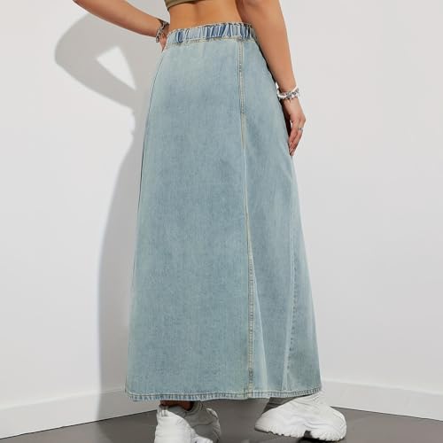 More information about Women's Plus Size Vintage Washed Denim Maxi Skirt High Waist Elastic Drawstring Loose Flared for Summer Trendy
