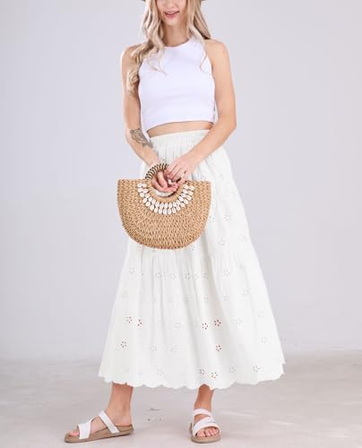 chouyatou Women's Lace Embroidery Eyelet Boho Skirt High Elastic Waisted Flowy Swing Midi Long Skirt 6