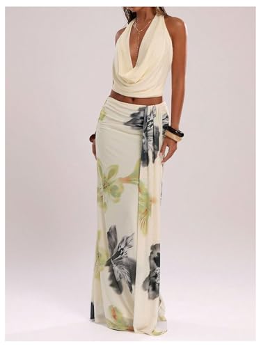 HOT ! GORGLITTER Women's Floral Print Ruched Bodycon Maxi Skirts Trendy Dressy Fall Low Waisted Y2k Split Long Skirts 2025