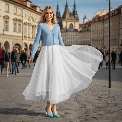 Women's Tulle Skirts A-Line Layered Mesh Midi Skirt High-Waisted Flowy Layered Tutu Skirts Bridesmaid Wedding Skirt 4
