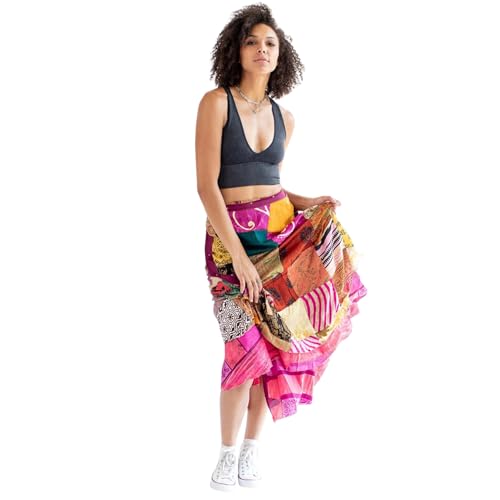RAJBHOOMI HANDICRAFTS Silk Vintage Patchwork Wraparound Long Skirt - Women's Long Maxi Skirt Boho Skirts Summer Skirts for Women Boho Colorful Maxi Multicolor 1