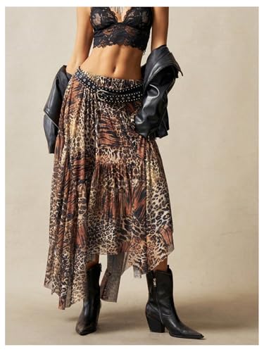 More information about Women's Leopard Long Skirt Vintage Cheetah Low Rise Ruffle Asymmetrical Flowy Skirt