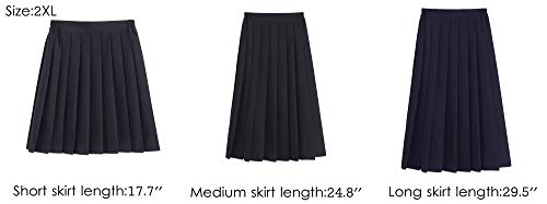 More information about Only Faith Women/Girls JK Uniform Skirt Elastic Waist Classic Pleated Skirt (Navy Blue-Long, XL)