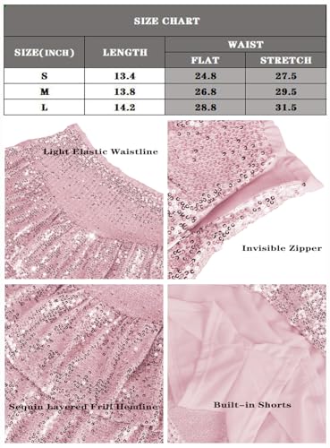 More information about MiiVoo Women’s Sequin Ruffle Mini Skirt Sparkly High Waist Lined Layered Flared Pleated Shiny Party Club Short Skirts