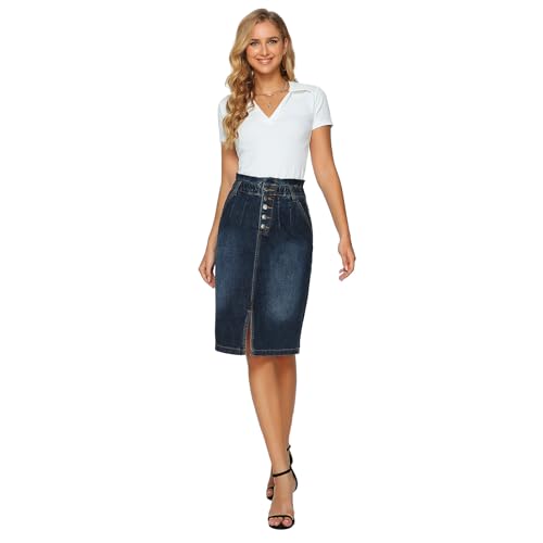 More information about Women's High Tummy Control Stretchy Denim Mid Skirts Waisted Elastic Button Jeans Skirt Casual with Pockets