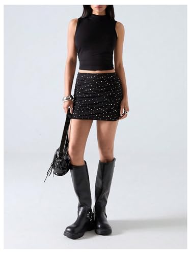SOLY HUX Women's Rhinestone Mesh Mini Skirt Glitter Ruched Bodycon Party Club Going Out Skirts 5