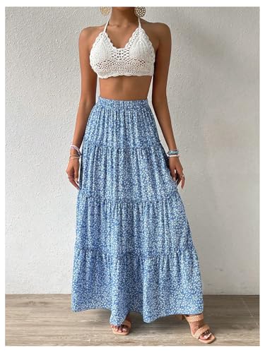 Verdusa Women's Boho Floral Tiered Maxi Skirts A Line High Rise Flowy Skirt 1