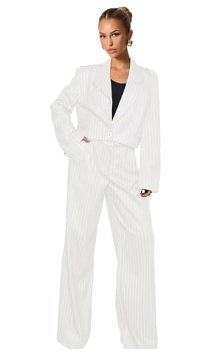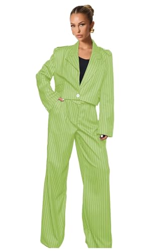 Pinstripe Pant Suits for Women Wedding Guest 2 Piece Womens Suit Casual 1 Button Short Blazer Tuxedo for Work Professional 2